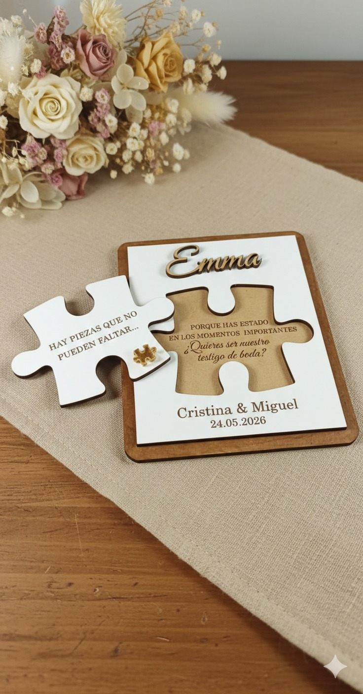 Los grabados en madera, las presentaciones delicadas y la personalización hacen que cada detalle sea único. No trabajamos con soluciones genéricas, sino que adaptamos cada diseño al estilo de vuestra boda para que todo tenga coherencia.